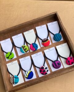 アフリカンプリントの布を使い、ひとつひとつ手づくりの1点ものです!